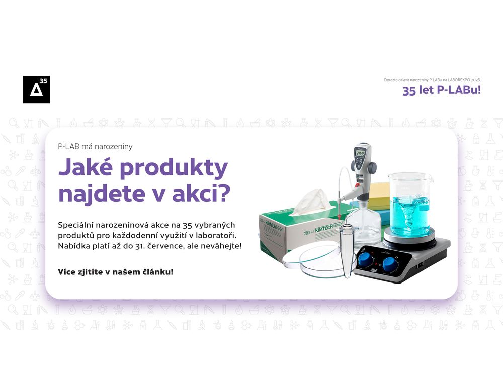 Naše společnost P-LAB oslavuje v roce 2026 výročí 35 let od založení v roce 1991. Kromě soutěží na sociálních sítích, zajímavých příspěvků z historie nebo oslav v rámci našeho stánku na veletrhu LABOREXPO 2026, jsme si připravili akci na 35 vybraných produktů, které se mohou hodit prakticky do každé laboratoře.
