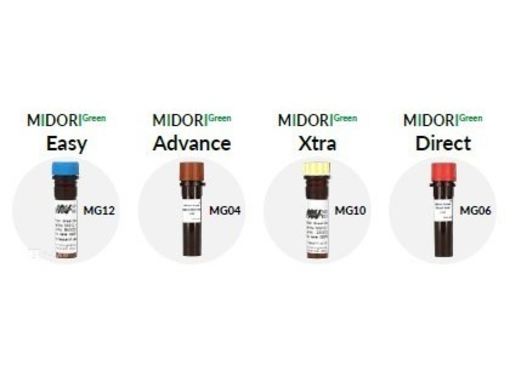 - Pro detekci DNA/RNA pomocí UV světla doporučujeme použít MIDORIGREEN Advance