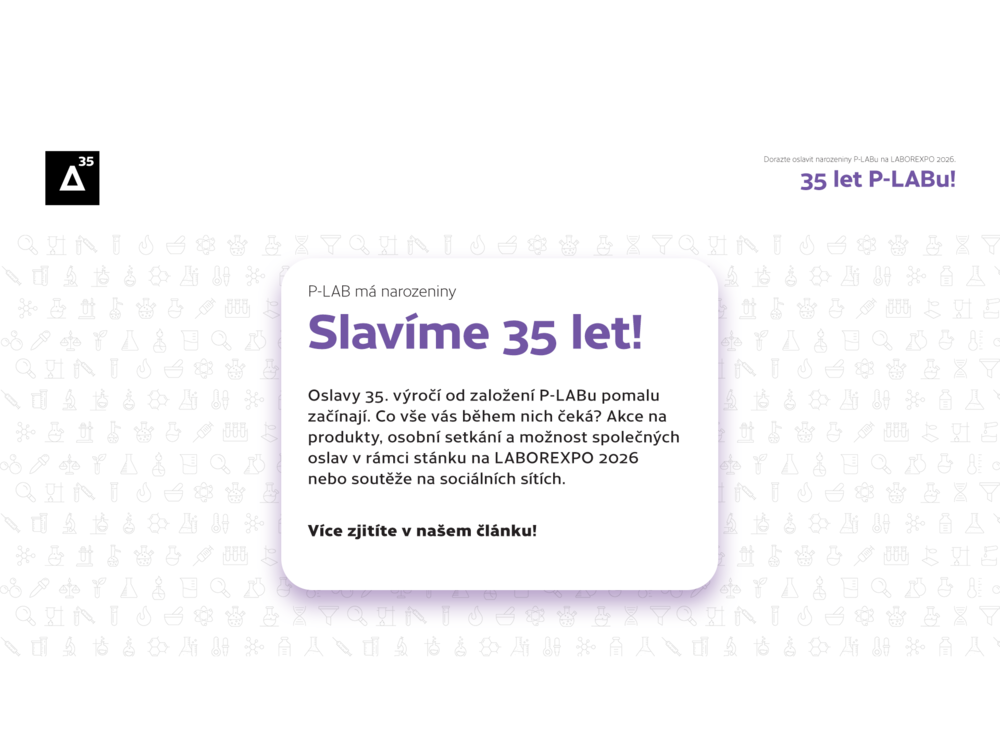 Bude to 35 let od chvíle, kdy v raných 90. letech začala na českém trhu působit společnost P-LAB. K letošnímu výročí jsme si připravili řadu aktivit, včetně soutěží na sociálních sítích, akčních cenovek na 35 vybraných produktů a možnosti společně oslavit a „připít si“ na stánku v rámci veletrhu LABOREXPO.