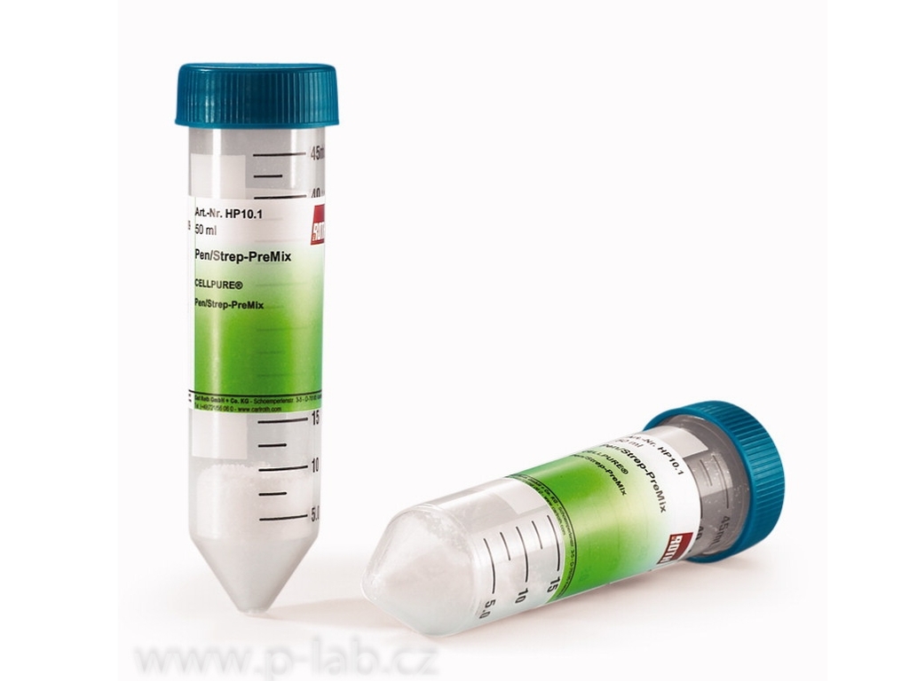 | Pen/Strep-PreMix CELLPURE® | 2 vialky pro 2 × 50 ml zásobního roztoku (100×) | plast | do týdne | R.HP10.1 | Bezp. list | 104,94 € |
