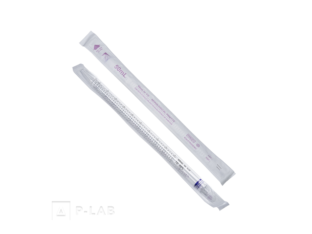Sérologická pipeta z vysoce transparentního polystyrenu pro pipetování objemů tekutin 0,1 − 50 ml
