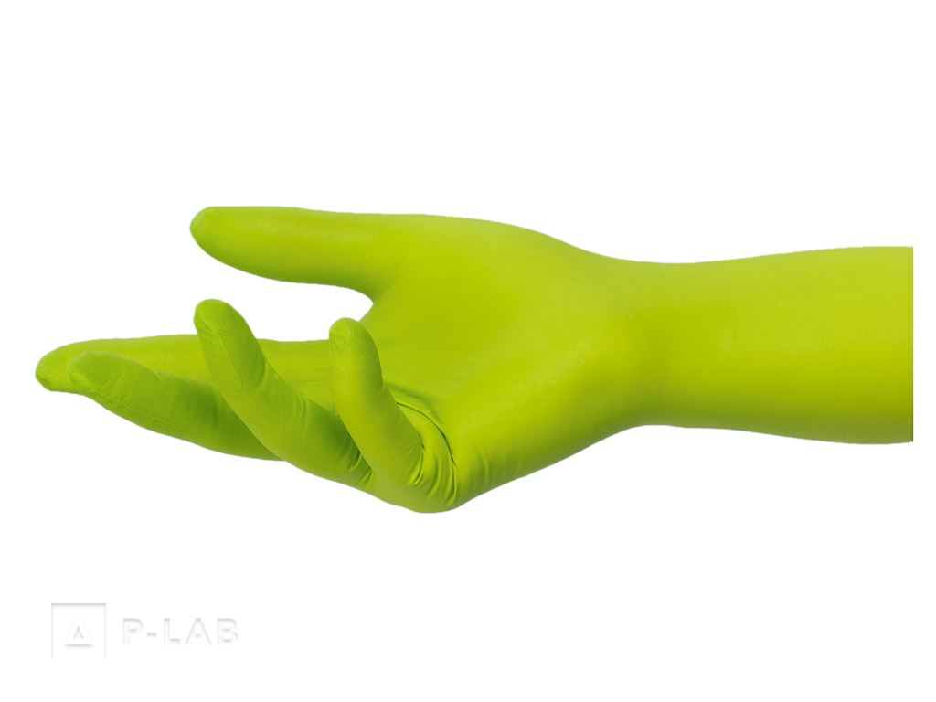 - Pravolevé rukavice se zdrsněnými konečky prstů prodloužené délky s dvojitou vrstva nitrilového kaučuku